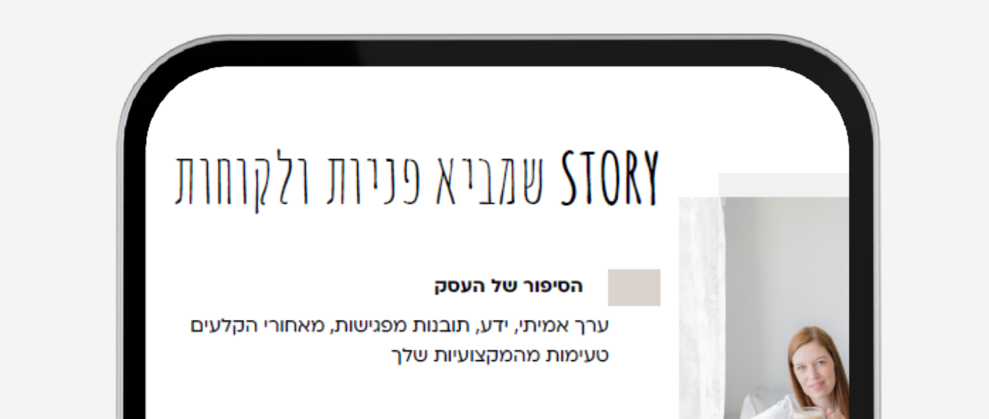 המדריך החינמי שלי לסטורי יראה לך בדיוק איך הופכים עוקבים ללקוחות.